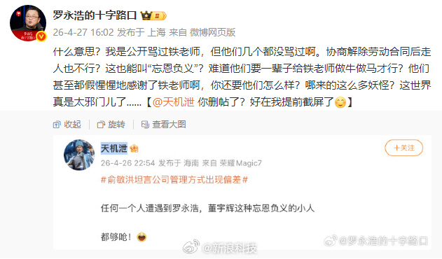 @罗永浩的十字路口谈东方甄选主播离职,称:什么意思?我是公开骂过铁老师,但他们几个都没骂过啊。协商解除劳动合同后走人也不行?这也能叫“忘恩负义”?难道他们要一辈子给铁老师做牛做马才行?他们甚至都假惺惺地感谢了铁老师啊,你还要他们怎么样?哪来的这么多妖怪?这世界真是太邪门儿了....