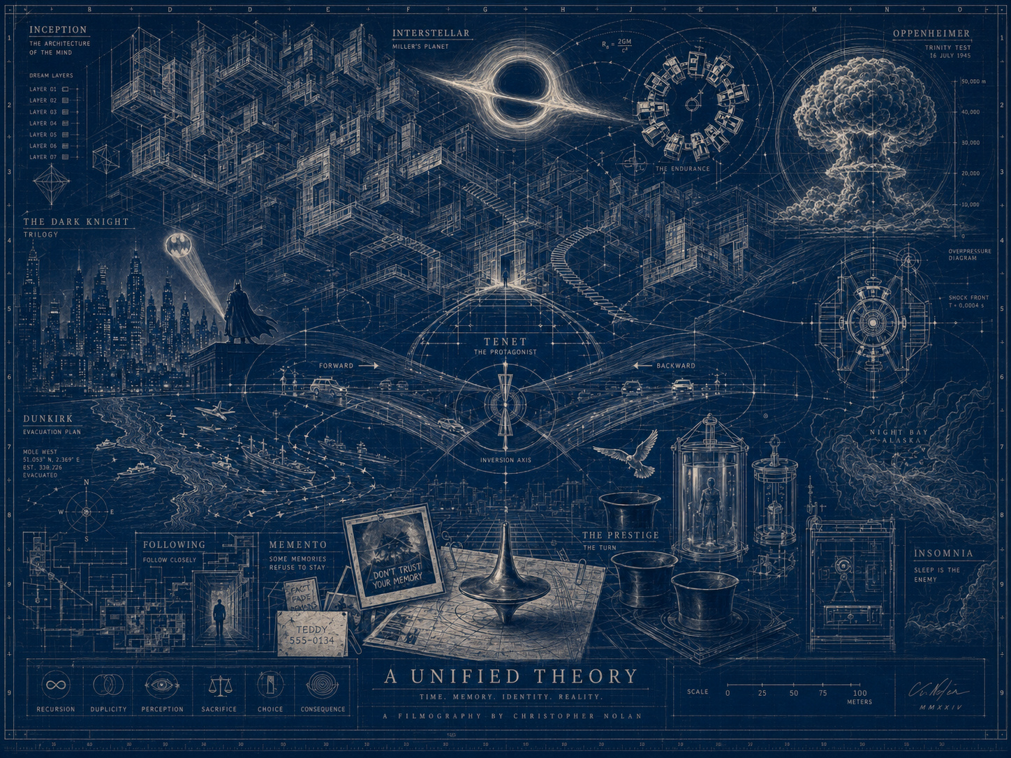 【20】诺兰电影作品的一种视觉汇总呈现。(GPT生成)