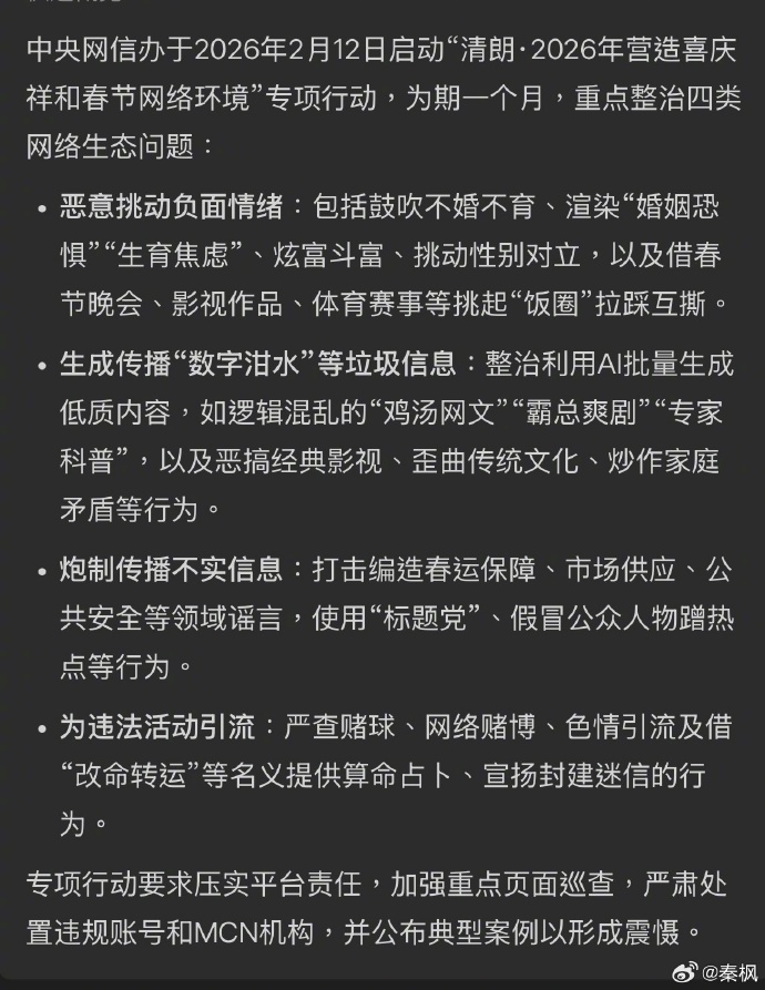 整治不良婚育价值观:标题提及整治“反婚反育”“性别对立”等内容,但无正文说明。