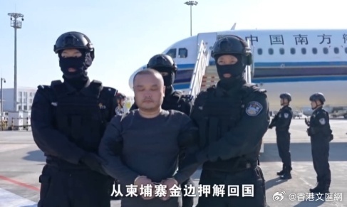 4月1日,在柬埔寨有关部门大力支持下,公安部派出工作组,成功将陈志犯罪集团核心骨干成员李雄从柬埔寨金边押解回国。