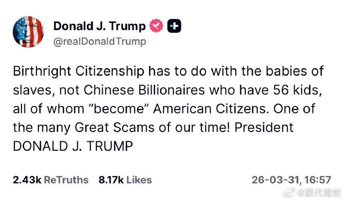 关键是他特别指出有一个人,生了56个孩子,全部入籍美国。